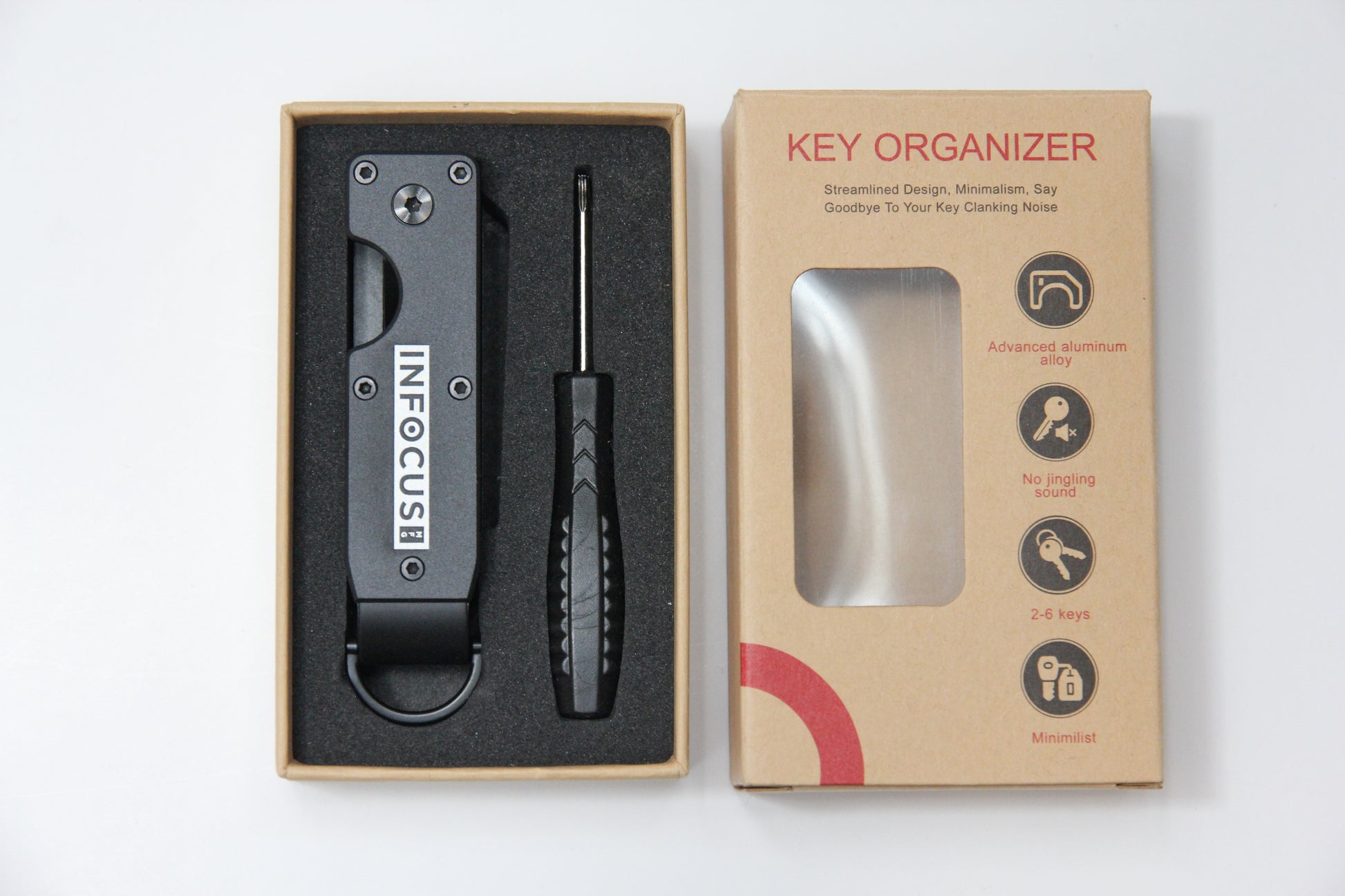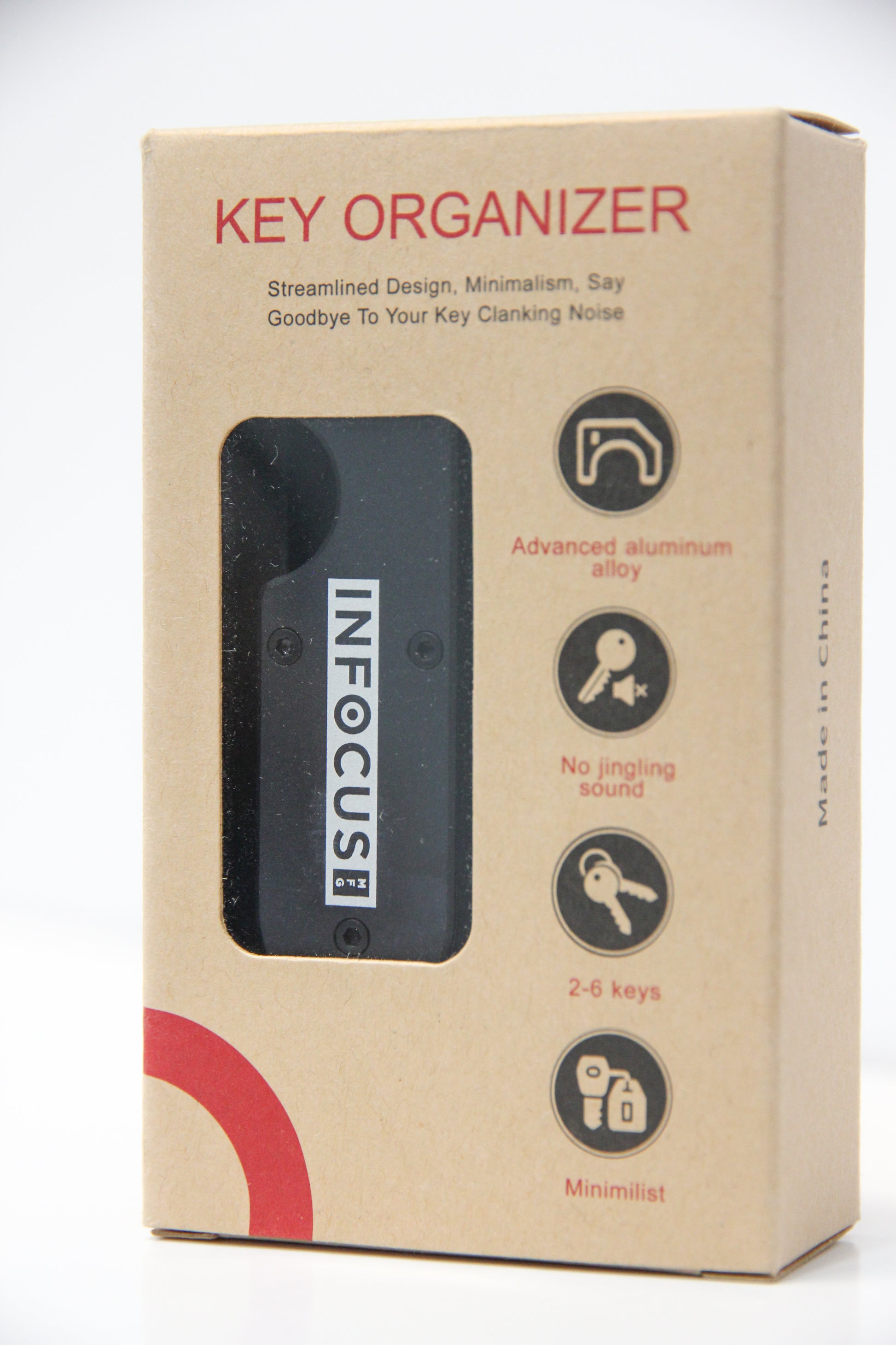 This Key organizer has an aluminum body and holds from 5-6 keys, neatly stowing them away so that you never have to worry about a bulky key chain or the jingling of your keys ever again. A built in piece of spring metal keeps constant pressure on the keys, this eliminates any jingling of your keys and keeps them tightly pressed together so they stay in place. Unlike other key organizers that use plastic, our unit has a metal and hard rubber attachment loop which adds flex and gives it durability by allowing the attachment loop to flex so it wont snap under pressure.
