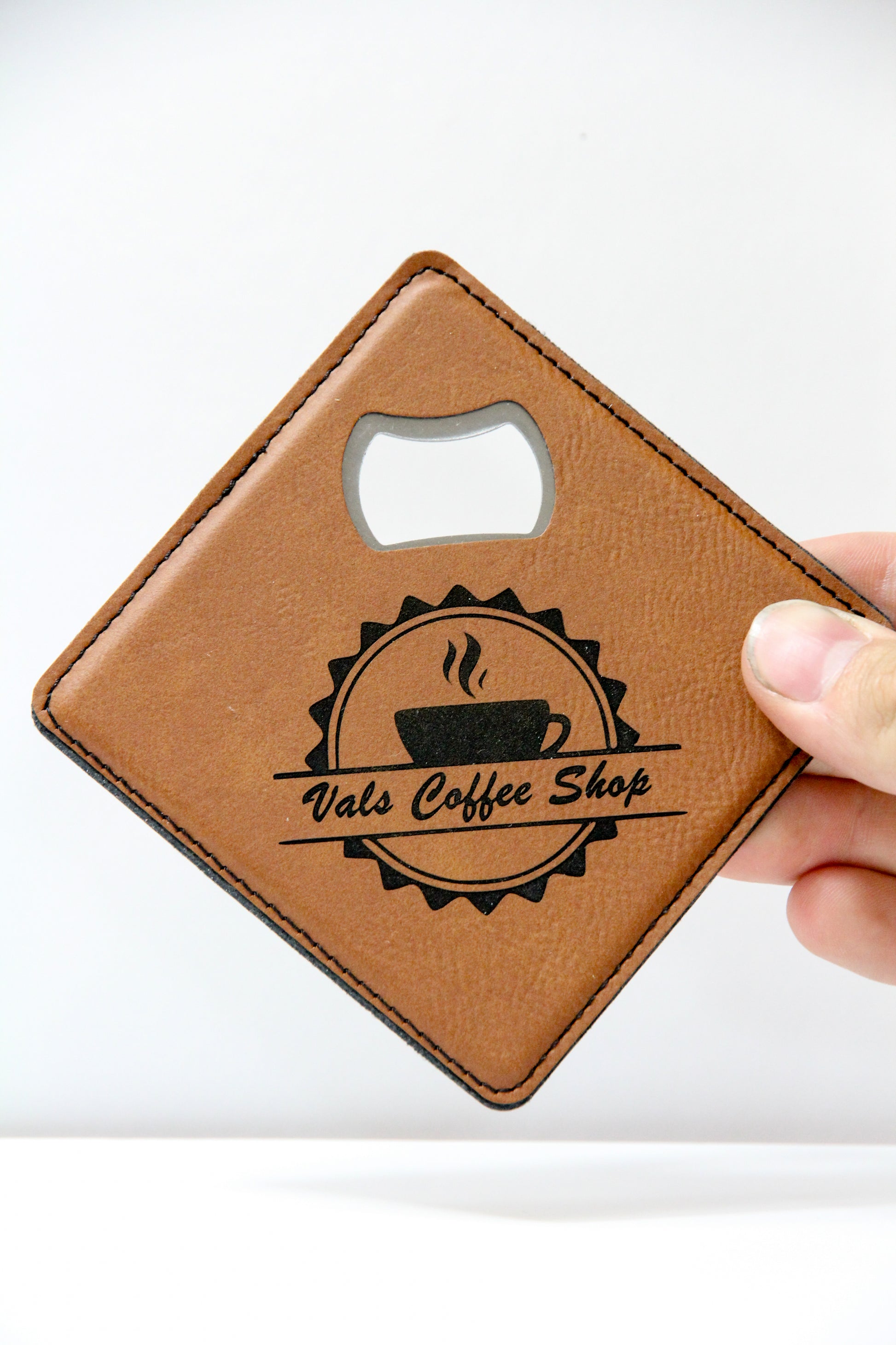 High-end leatherette bottle opener coaster. Unique and practical, these coasters are a nice touch in any home. With padded leather and vivid colors, our special leather makes your logo pop! Available in 3 beautiful colors for you to choose from.