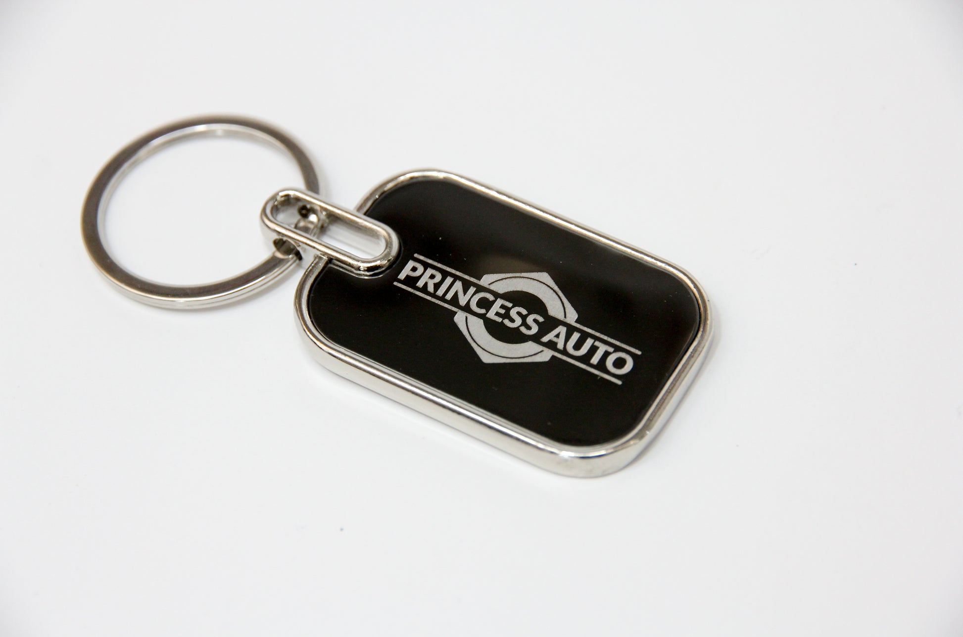 Keychain with Black mirrored zinc alloy face. A nice way to decorate your car keys or keychain. A white marking on this black surface stand out very nicely and reflects beautifully.