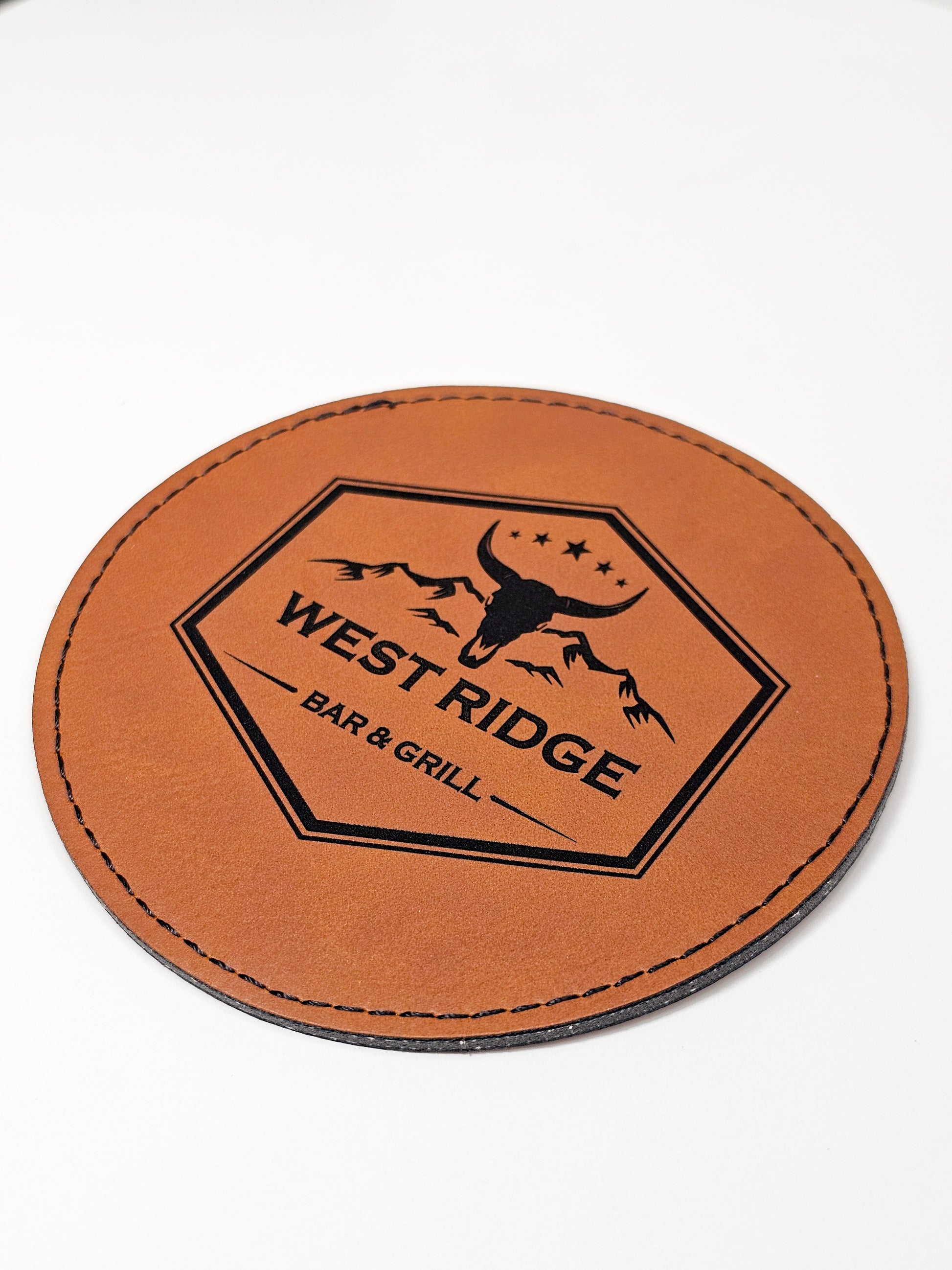 Our round leather coaster is a fit for any setting, and any place, be it at work, at home, at the cabin, at a party. Where will these round leatherette coasters not turn heads? Let us custom engrave your logo on one side or both and you'll have a giveaway gift that is a guaranteed hit to anyone who gets it.